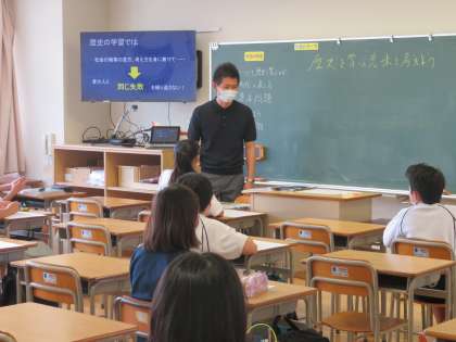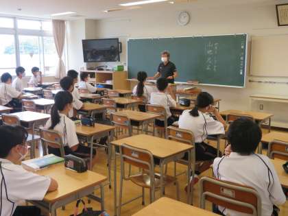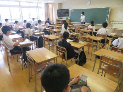 1年生の授業の様子です。一生懸命先生の話を聞いています。また、ICTを活用した授業にもしっかり取り組めています。今週も折り返し地点なので、引き続き頑張りましょう。(田村)