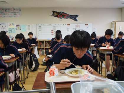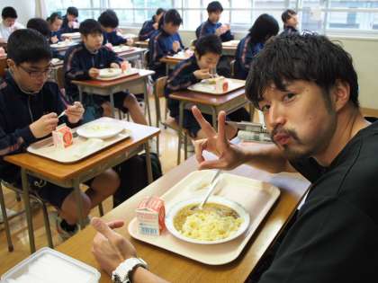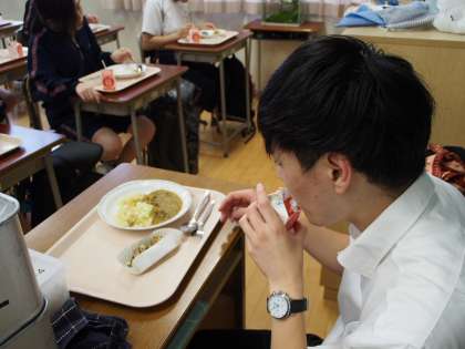 たとえ班員と会話を交わしながら食べることができなくても、美味しくいただきました。先生もおいしい顔をしています。