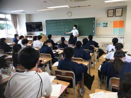 1年生の数学の授業です。正の数負の数について学習しています。プラスマイナスに気をつけながら計算をすることは基本中の基本ですが、受験生でもうっかりミスをしやすい大事なところです。みんな丁寧に学習しています。(副校長)
