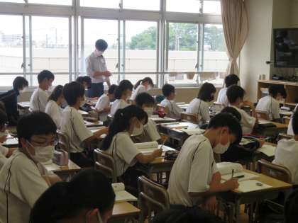 1年生の授業の様子です。昨日より、奇数と偶数で分散登校していたクラスが一体になり、授業でも多様な取り組みを行っています。