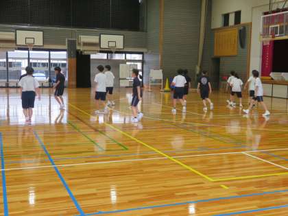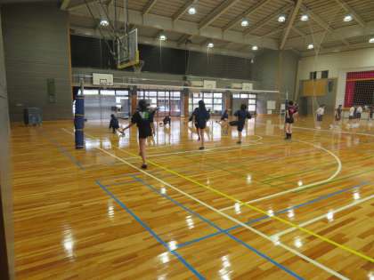 校庭と同様に、体育館でもバレーボール部、女子バスケットボール部が活動しています。体育館も暑くなることがあるので、熱中症に気を付けて取り組んでください。