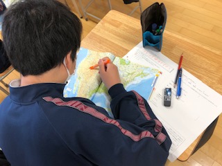 1年生の地理では地図帳の学習をしています。