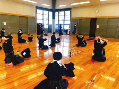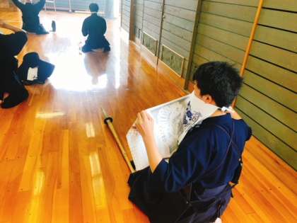 剣道部は今年度初めて防具をつけた稽古をしました。ガイドラインに従い、面の下には手ぬぐいで作った面マスク、透明のフェイスシールドを着けています。感染症予防とはいえ、なかなか息苦しい…。こまめに休憩をとって稽古を行いました。(平塚)