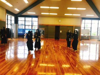 剣道ならではの気合を入れた声出しは今はできませんが、久々に防具をつけた打突稽古に部員たちは嬉しそうでした。(平塚)