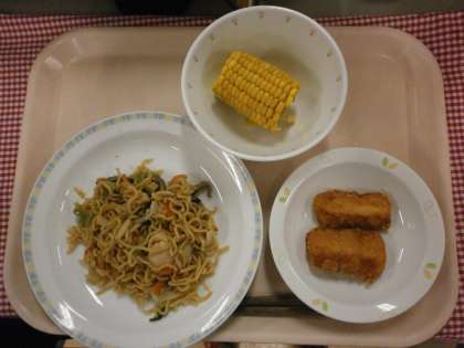 今日の給食は、デザートに茹でたとうもろこしを出しました。とうもろこしは、この時期しか食べられない旬の食べ物です。夏の代表的な野菜の1つですね。とうもろこしを主菜として食べている国もありますが、日本では「未成熟」のとうもろこしを食べているため、野菜として分類しているのだそうです。旬のとうもろこしは、甘くておいしいですよ。味わって食べてください。