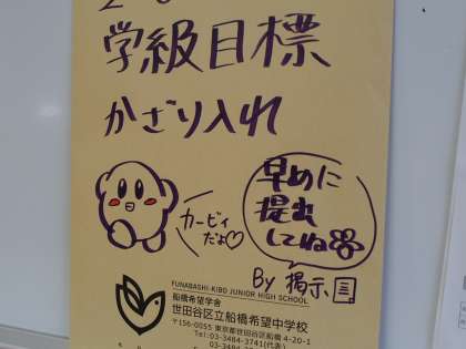 今朝も教室を回っていると、様々なものが目に入ります。「新しい生活様式」をうまく当てはめた学級目標や、かわいいイラスト。そして今、感染症防止対策のためにごみ箱を撤去しているため、各自ビニール袋を用意する必要があります、という画像です。