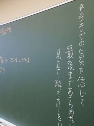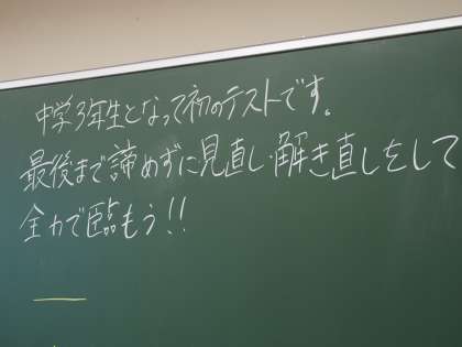 今年度最初の定期考査で、その力を100%発揮できるよう励ますのは、やはり先生の言葉の力です。教室にはそのメッセージがしっかり書かれています。