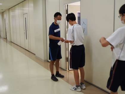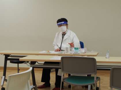 内科検診は、感染防止対策を徹底して行われています。内科校医の先生、今日は休日返上で朝から250名の1年生を診察していただきます。