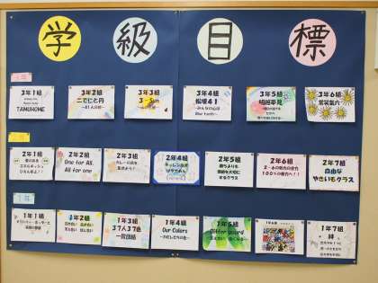 そして、20クラスの学級目標が…。文字通り「クラスカラー」ですね!