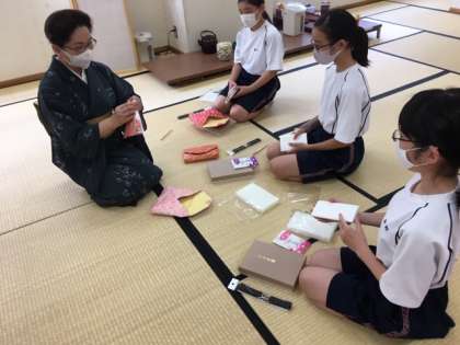 二番手は一年生。今日、お道具をもらいました。新しいお2人道具を大事にして一生懸命お稽古してください。