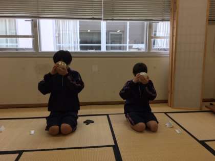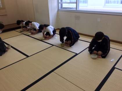 今日は、お辞儀の仕方、歩き方をお稽古して、最後に自分でお茶を点てました。美味しかったかな?(大橋幸枝)