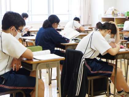 2階のフロアーを一周すると、声が聞こえているのは補習教室の先生の声だけです。9期生の自習の部屋はもちろん、試合が終わった剣道部が正座をしている格技室も静寂に包まれています。