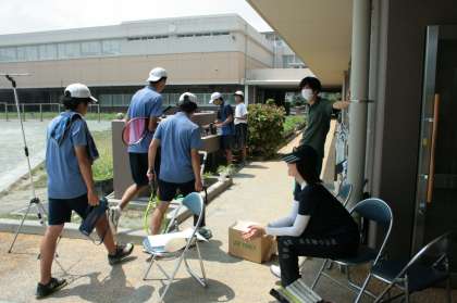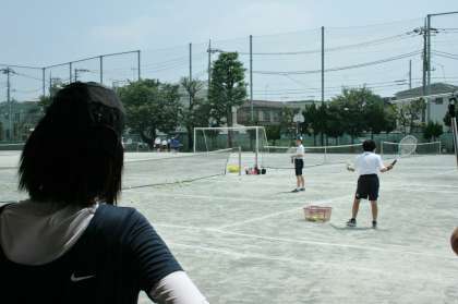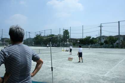 校庭では硬式テニス部が練習中です。夏休み中の良いところは、顧問以外の先生たちも職員室から出てきて「あれ〜うまくなったね」「成長したなあ」と会話をしながら、見守ってくれているところです。