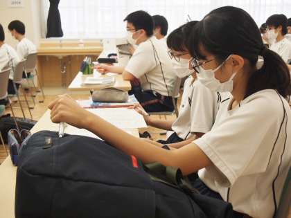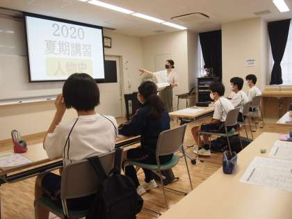 夏休み最後の1週間の始まりです。夏期講習や部活動も活動を再開しています。そんな中10期生の夏期講習もスタート。人物史を古代から江戸まで一気におさらいをしています。ワークシートに真剣にメモをとるフナキボ生です。