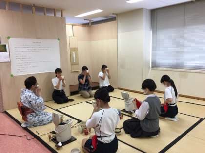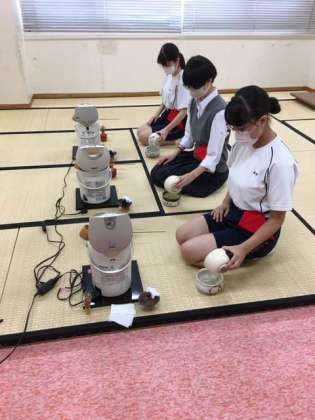 一番手は三年生。人数も少ないので、三年生の先生をお招きして、お点前を披露しました。
