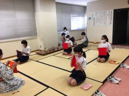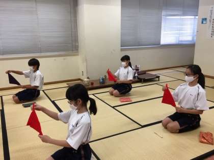 二番手は一年生。三回のお稽古で随分と上達しました。まだまだ覚えることは沢山あります!今日はふくさの使い方をお稽古しました。(大橋)
