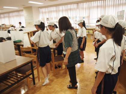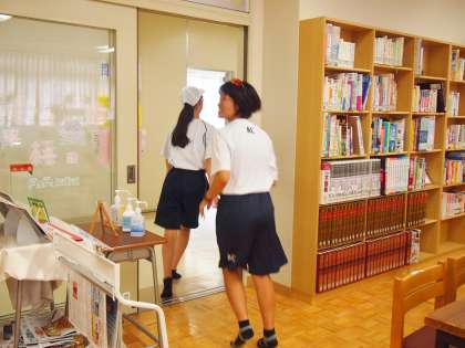 養護教諭のお願いに馳せ参じ、椅子を運んでくれたのは硬式テニス部でした。図書室の椅子の座面が布製なため、消毒のために外気にさらして天日干しをしていたのです。この仕事をさわやかに、笑顔でやってくれました。図書室から帰るときも「失礼しました〜!」とさわやかなあいさつつとともに。あれっ、最後に走り去っていったのは…先生?
