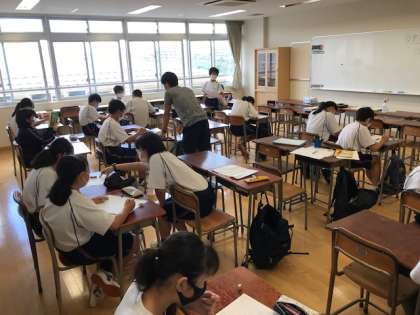 昨日に続いて、補習教室の様子を紹介します。1年生は本日も数学の補習を行っています。先生が2人いるので質問にすぐ対応できますから、分からないところはどんどんときいて力をつけてほしいですね。(副校長)