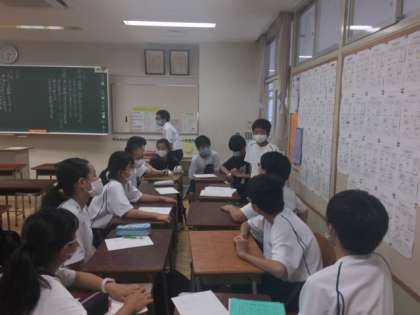 美化委員会では、学年ごとに代表の生徒が司会をしながら反省点や改善点についての意見を出し合っていました。