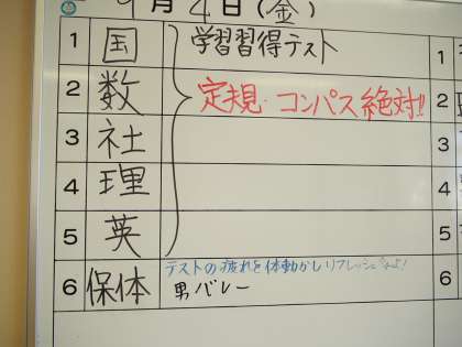 今日は世田谷区内の全中学校で一斉に行われる学習習得確認調査の日です。どんな試験でもやはり「テスト」は緊張するだろうなあ、フナキボ生のみんな。。。
