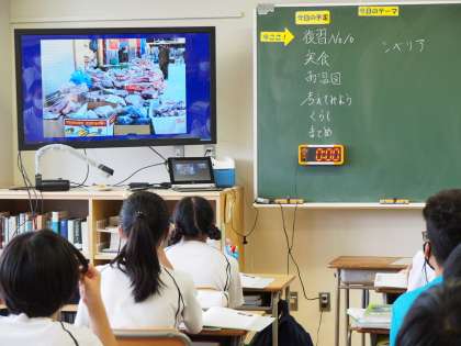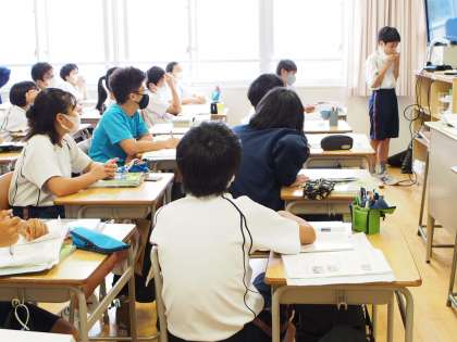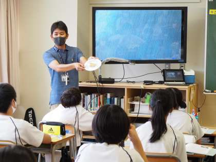 11期生の地理の授業。冷帯に住む人々の暮らしを学んでいます。前回の授業ではイヌイットが狩猟したアザラシをそのまま食べる習慣があることを学びました。しかし、みんなが生のアザラシを食べているわけではなく、冷帯地域の伝統料理であるピロシキから暮らしのヒントを探ろうと、代表生徒に食レポをしてもらいました。給食のハンガリアンシチューでお腹を満たしているとはいえ、やはり食レポが気になる、のは真ん中の画像から十分に読み取れますね。