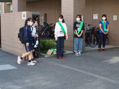 今年度に入って「初めて」となるあいさつ運動が今朝から始まりました。3年1組の保護者の方のご協力のもと、フナキボ生を校門で出迎えていただきました。昨年度にくらべ、生徒よりも保護者の方が緊張している様子がヒシヒシと。。。。ありがとうございます!