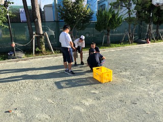 野球部の練習、外野ノックの合間の一コマです。ふと振り返ると選手同士で打球の入り方を地面に指で図を書いて教えあっていました。ただ待つだけでなく、自分たちから上手くなろうとする姿勢が素晴らしい!
