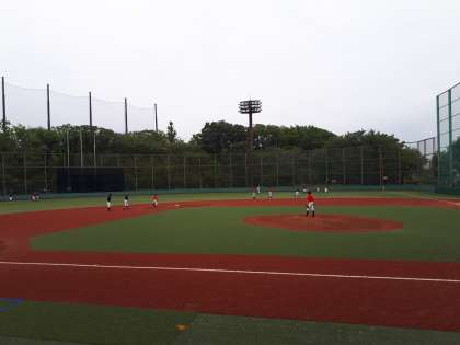 明日のブロック代表決定戦の会場になる大蔵総合運動場野球場で合同練習を行っています。どちらの学校も明日の代表決定戦に向けて気持ちが入っています。(宮内)