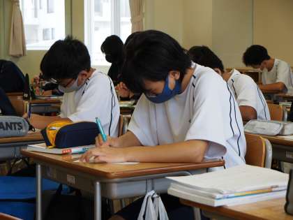 数学授業の最初は、計算練習をやるのが日課です。もちろんチャイムが鳴ってからすぐに初めてもこの集中力。。。なぜゆえ、なのでしょうか。その答えは。。。