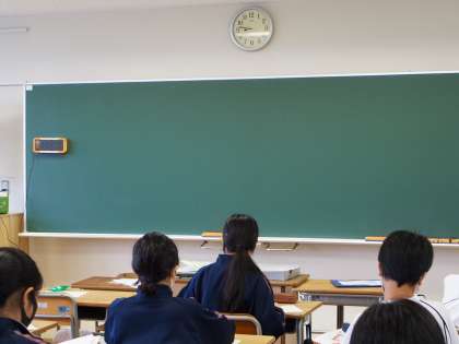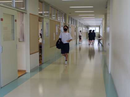 まずは11期生の廊下。1校時の開始チャイム2分前が一番上の画像。続いて1分前が真ん中です。すでに生徒の姿はありません。ちなみに、教室に入ろうとしている生徒は、授業前にもう一度しっかり手を洗って急いで戻ろうとしていました。そして授業前の教室の黒板。前日の掃除の最後にきれいにしたという黒板。ホレボレするほどきれいです。こういった要素が、落ち着いた授業環境と集中力を生み出すのは間違いありません。