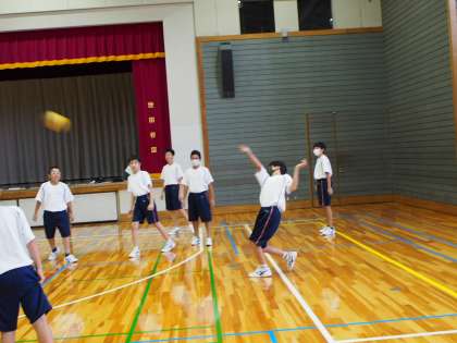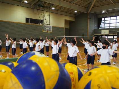 テスト返却を体育館で行った理由。それはもちろん、残った時間少しでもいいから体育をやりたいから。答案返却とは別人のような楽しい表情でパレーボールを楽しんでいました。