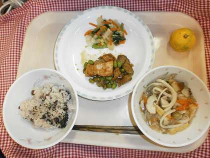 10月4日は、開校記念日です。昔から日本では、赤いものは悪い気を払うと考えられていることから、お祝いに赤飯を食べます。お祝いのお赤飯の赤い色は、ささげというお豆の色です。小豆は皮がはがれやすく縁起が悪いとされ、ささげが使用されるようになりました。たくさん作ったので、たくさん食べてください。