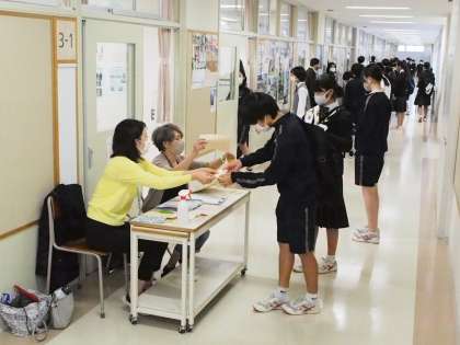 今日はPTA会費の集金日。朝から担当の方々が各クラス前で集めています。「さすがフナキボ生ですね。礼儀正しくきちんとあいさつをして渡してくtます」と担当の保護者の方に教えていただきました。