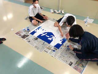 各学年のフロアではクラス旗の作成が始まってます!各クラス、丁寧に作業しています。ですが、時間に制限もあります。丁寧かつ、迅速な作業が求められます。