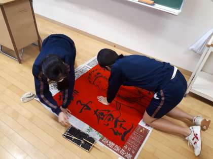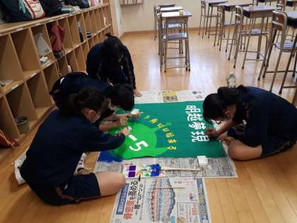 運動会にむけてクラス旗作製の頑張っています。