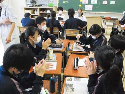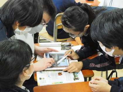 このフソトのすごい所は、論拠となる資料画像をパシャと写してそのまま載せることができるところです。教科書の写真を写した画像は「拡大写真」となるため、思わぬ発見も!そして最後は班員みんなで拍手です。。