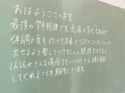 いよいよ運動会が迫ってきました。9期生にとっては中学校生活最後の運動会です。