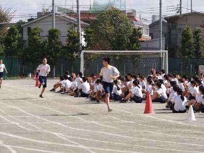 2、3校時は9期生の最後の学年練習。リレーのアンカー勝負は、前回に比べかなり接近戦に。本番では何かアクシデントが少しでもあると、すぐ逆転の可能性が十分に予想される様相になってきました。