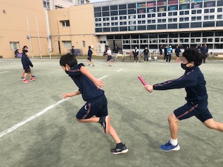 朝練では代表リレーのバトンパス練習が行われました。さすが選抜。流れるようなバトンパスがカッコいい!