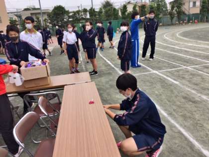 各係の生徒が早くから集まり準備をしています。競技以外のところでも全力です。(片山)