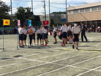 係の生徒が打合せや準備をしています。競技を支えて頑張っていますね。(副校長)