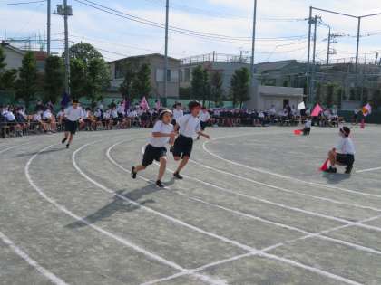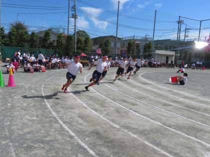 100M走の様子です。どの学年も全力疾走で頑張っています。