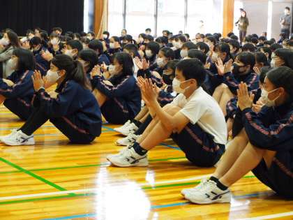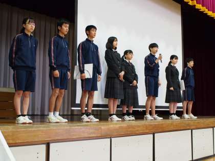 今日の朝会も並んだあとは、自然におしゃべりがなくなり静寂が訪れていて、まるで2年3生の集会のようです。すごいなあ、1年生。