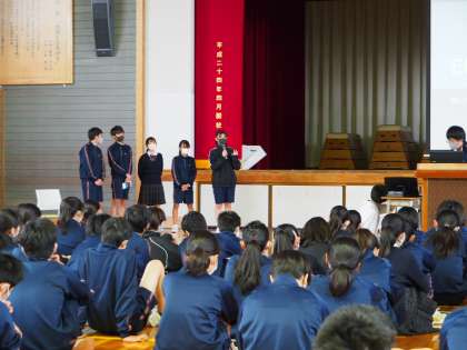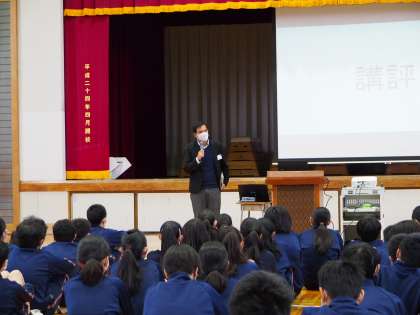 どの‘会社’も十分な準備の時間が取れなかったにも関わらず、発表のレベルが高く、さすがクラスを勝ち抜いてきたことはあります。そしてゲストとして講評をしていただいたのは、特別審査委員の方。この方、地域在住の実業家の社長さんで、ご自身で会社を経営している本物の方です。「どの会社も素晴らしい発表で、日本の将来は安泰だと思うほどです」とお褒めの言葉をいただきました。