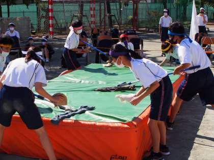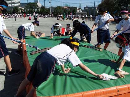 感染症対策についてもフナキボ生の‘総力戦’が光りました。そのひとつがこのマット消毒です。