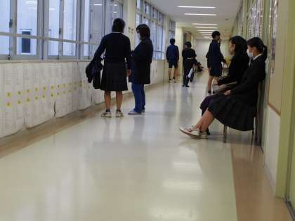 今日から11月。3年生の進路選択も本番をむかえています。今日から9期生は進路面談期間に入りました。放課後の廊下には保護者とともに面接の順番を待つフナキボ生の姿が見られます。