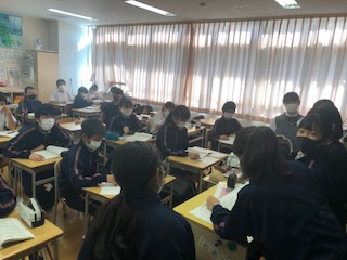 一年生の学活では合唱コンクールに向けての選曲を行いました。自分のクラスに合っている難易度は?音域は?メッセージ性は?委員が中心になって考えました。