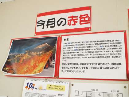 今朝の最低気温は10度を下回りました。すっかり秋の気配です。そして‘赤組’の教室掲示も11月の装いに変わりました。