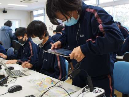 カメラ機能を使って絵本を撮影し、それにデジタルの付箋をつけます。しかし、みんな撮影に結構苦労をしています。でも、出来上がった画像を見てみると、いやなかなかきれいに撮れていますよ。