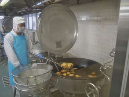 メニューを見ると、じゃがいものカレーサモサとあります。揚げられているのを見ると…揚げ餃子のような雰囲気です。